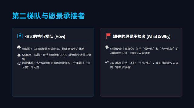 准确的描述是:马斯克帝国不缺“执行梯队”,缺的是“愿景承接者”。